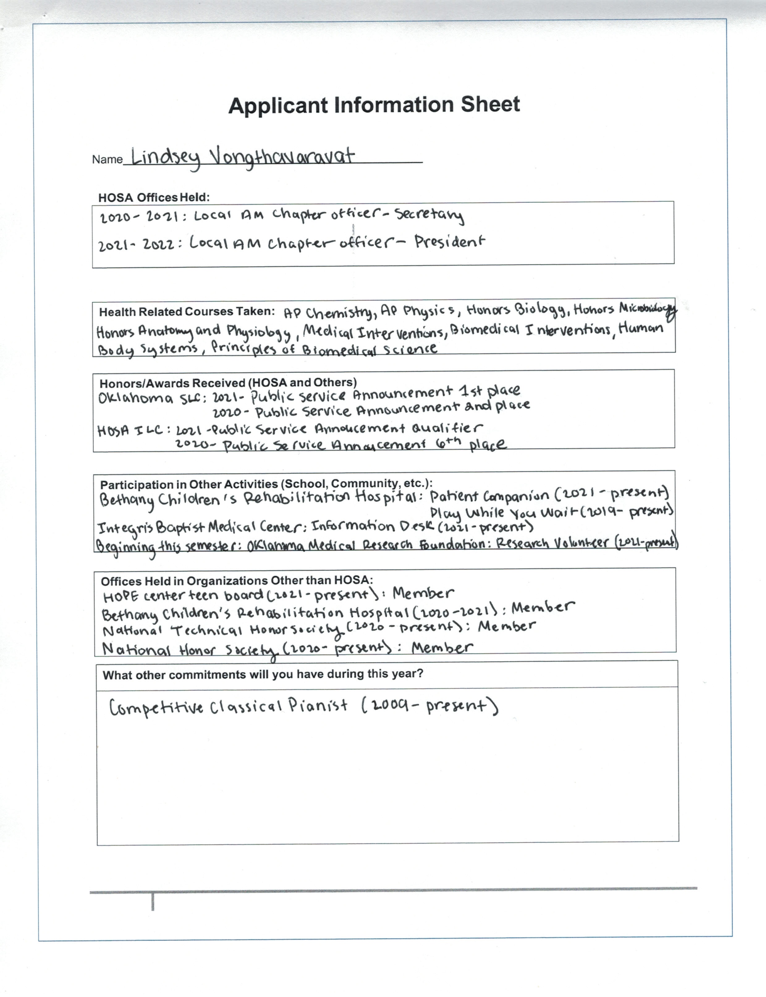 Follow the instructions below to vote for the 2021-2022 Oklahoma HOSA State Officers and 2021/2022 official Oklahoma HOSA pin. If you have any questions during the voting process please contact Debbie Bennett by email at debbie.bennett@careertech.ok.gov or by phone at 405-743-6843 ext. 843